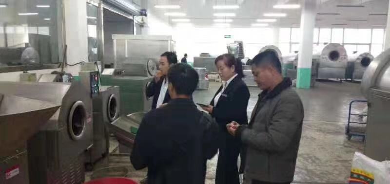 湖南邵阳客户一行三人来许昌智工考察炒货机,现场签合同订购DCCZ5-10型多功能电磁炒货机三台