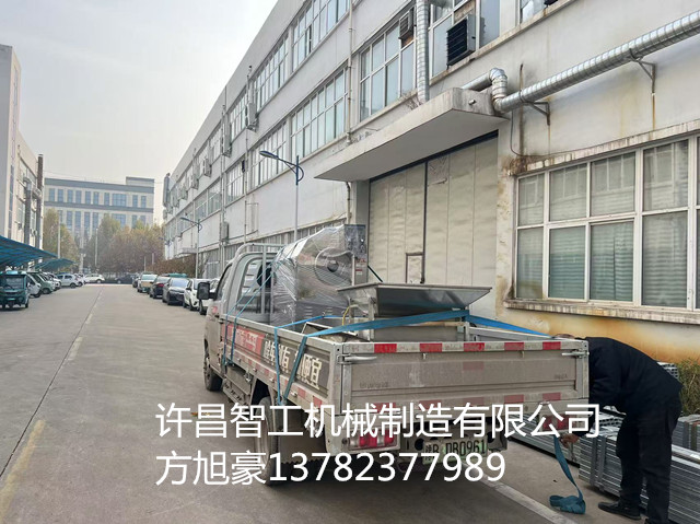 11月23日,河南周口客户订购的许昌智工5-10型电磁炒货机和振动筛试机完毕,装车发货。