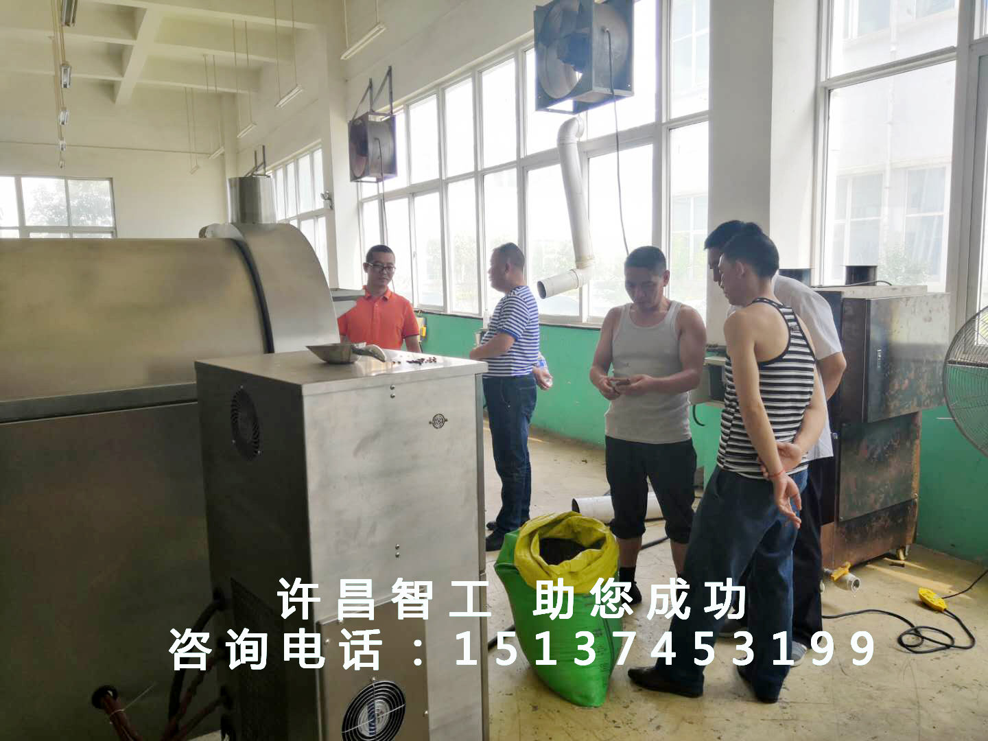 6月3日,贵州客户一行四人来许昌智工考察流水线电磁炒货设备,现场试机炒制食材“皂角米”